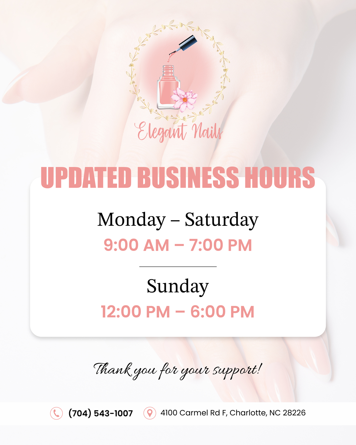 Elegant Nails Waxing Spa is one of the best nail salon located conveniently in Charlotte, NC 28226. We guarantee your satisfaction by the passion and many years’ experience of our technicians.